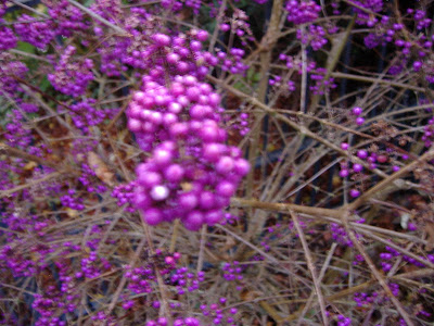 Very cool bright green shrubberies that were filled with red leaves--voila! Instant yuletide feeling. (I don't know why my camera is suddenly blurry. I've checked the settings. Perhaps it is just old age? The camera's, not mine.)